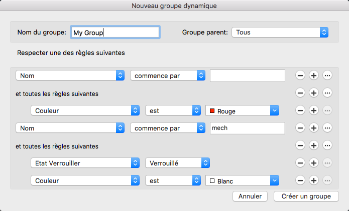 - Pour les regrouper à l'aide de règles logiques OR, cliquez sur