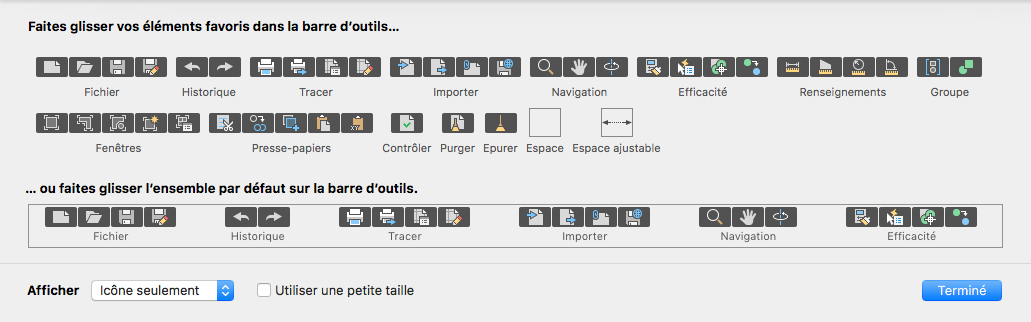 Affichez les outils les plus fréquemment utilisés avec la barre d'outils.