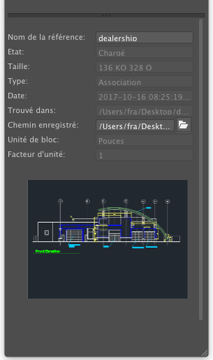 Si vous sélectionnez un fichier DWG (xréf) référencé, des propriétés supplémentaires s'affichent. Aucune d'entre elles n'est modifiable.