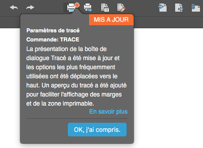 Les nouvelles fonctionnalités sont mises en évidence dans le produit au moyen d'un badge. Passez le curseur de la souris sur le badge pour afficher une brève description du changement apporté. Sélectionnez OK, j'ai compris pour supprimer le badge et l'info-bulle.