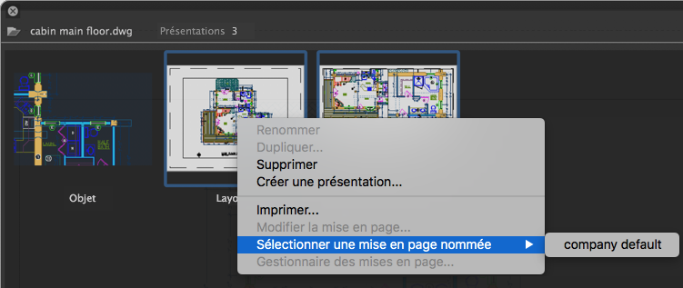Vous pouvez également appliquer une mise en page nommée, modifier une mise en page ou imprimer à partir du menu contextuel de l'onglet Présentation.
