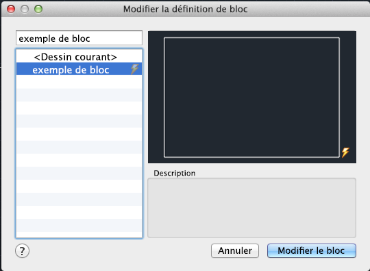 Displays the description of the selected block definition.