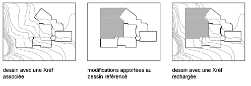 A l'ouverture d'un dessin, toutes les xréfs sont mises à jour automatiquement. Utilisez l'option Actualiser le contenu (Recharger) du gestionnaire des références pour mettre à jour les xréfs chaque fois que vous voulez vous assurer que les dernières versions sont affichées dans votre dessin.