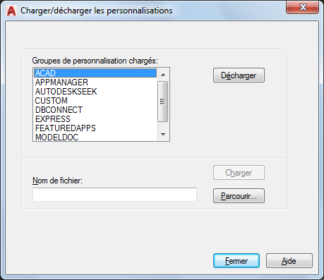 Spécifie le fichier à charger si vous cliquez sur Charger. Vous pouvez entrer le nom du fichier ou cliquer sur Parcourir pour afficher la boîte de dialogue Sélectionner un fichier de personnalisation (boîte de dialogue standard de sélection de fichiers).