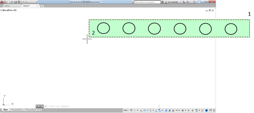 La variable SELECTIONOFFSCREEN activée permet de sélectionner les entités qui sont hors de l'écran (le point 1, dans le graphique, est en dehors de l'écran principal).