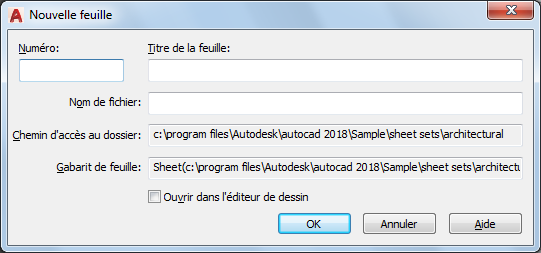 Permet de générer une feuille dans le jeu de feuilles courant en créant un nouveau fichier dessin (DWG) contenant un onglet de présentation portant le même nom que le dessin.
