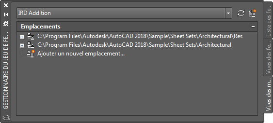 Vous pouvez ajouter et supprimer des emplacements de dossiers pour déterminer quels fichiers dessin sont disponibles pour le jeu de feuilles courant.