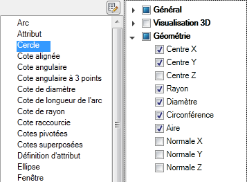 - Dans le volet Propriétés, activez les cases à cocher en regard des propriétés générales que vous voulez afficher dans la palette Propriétés rapides pour tous les types d'objet.