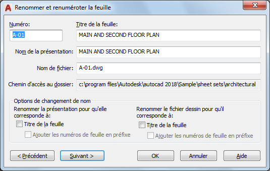 Si cette option est sélectionnée, le nom du fichier dessin est modifié pour correspondre au titre de la feuille.