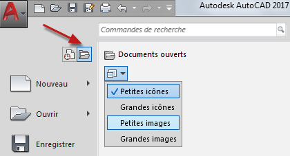 - Dans la zone de recherche de commande, cliquez sur le bouton Options d'affichage et sélectionnez une option d'affichage.