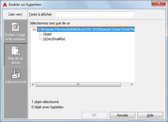 Ouvre la boîte de dialogue Sélectionner un emplacement du document, dans laquelle vous pouvez sélectionner un emplacement nommé d'un dessin vers lequel le lien va être créé.
