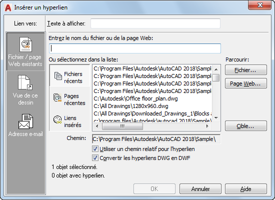 Spécifie que l'hyperlien DWG va être converti en hyperlien de fichier DWF lors de la publication ou du traçage du dessin dans un fichier DWF.
