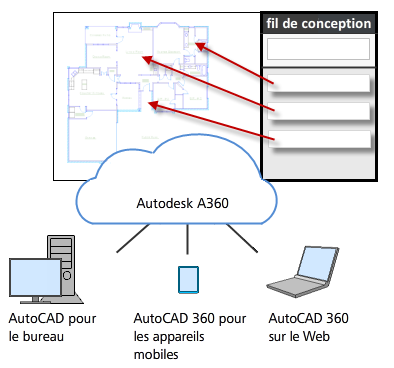 Lorsque vous enregistrez un dessin dans votre compte A360 en ligne, les données du fil de conception et les images associées sont également stockées de manière sécurisée dans A360.
