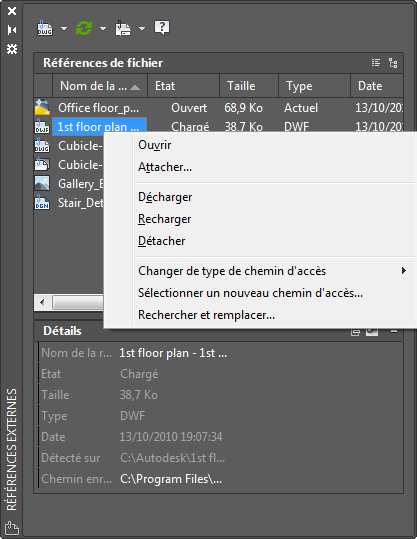 Si la référence que vous sélectionnez pour l'édition comporte des xréfs ou des définitions de bloc associées, elle apparaît avec ses références imbriquées dans la boîte de dialogue Edition des références, où vous pouvez les sélectionner. Les références imbriquées sont affichées uniquement si l'objet choisi fait partie d'une référence imbriquée. Vous ne pouvez sélectionner qu'une référence en vue de la modifier. Si vous éditez une référence contenant des objets OLE, ces derniers sont affichés mais ne peuvent pas être sélectionnés à des fins de modification.