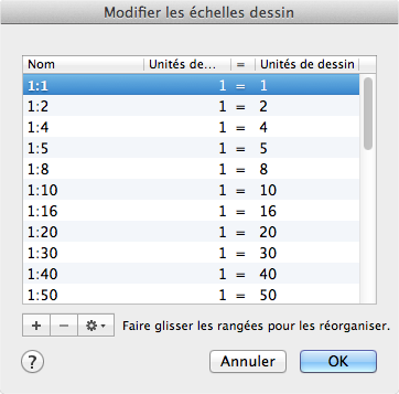 Displays the list of currently defined scales. Also displays temporary scales that are imported when xrefs are attached. If a scale name is duplicated, but has a different value, a number is appended to the name.