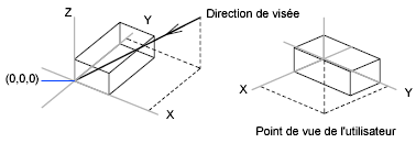 Crée un vecteur qui définit la direction à partir de laquelle le dessin peut être visualisé. La vue définie équivaut à regarder l'origine (0,0,0) depuis le point.