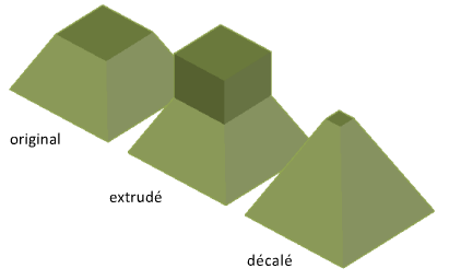Cette méthode permet d'ajuster simultanément les faces et raccords adjacents sur la nouvelle position de la face décalée.