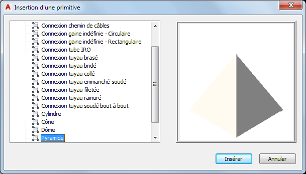 inverser la primitive de sorte qu'elle soit positionnée de l'autre côté du plan auquel elle est rattachée | Tapez i (Inverser plan), puis appuyez sur la touche Entrée. |