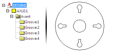Dans cet exemple, le dossier Groove:1 contient la rainure supérieure et est étendu en réseau pour créer les autres. Etant donné que les dossiers sont associatifs, si vous modifiez une rainure, les autres sont actualisées.