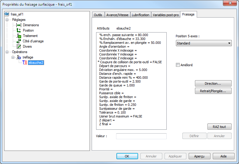 Ces attributs sont disponible uniquement pour l'opération de finition parallèle.
