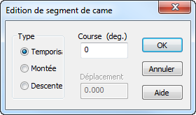 - Temporisation indique un arc de rotation qui ne monte pas, ni de s'abaisse mais dont le diamètre est déterminé à partir de l'extrémité du déplacement directement précédent. Course définit de combien de degrés la temporisation est maintenue.