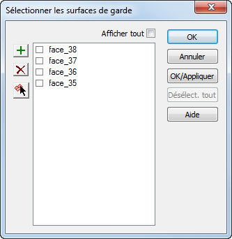 Remarque : Si vous utilisez des surfaces de garde pour éviter les brides, vous pouvez le faire automatiquement en utilisant la boite de dialogue