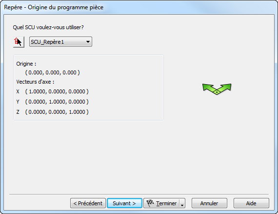 - Cliquez sur Suivant pour aller à la page Décalage du programme pièce ou cliquez sur Terminer.