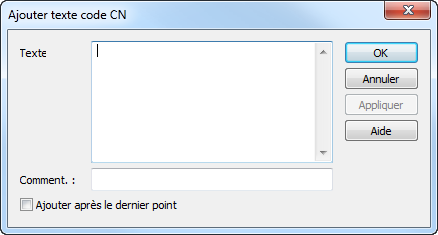 Pour afficher la boite de dialogue Ajouter texte code CN, cliquez sur Ajouter texte code CN