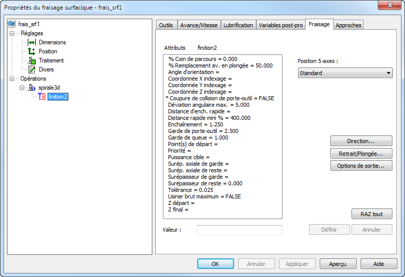 Direction — Cliquez sur ce bouton pour ouvrir la boite de dialogue Direction d'usinage.