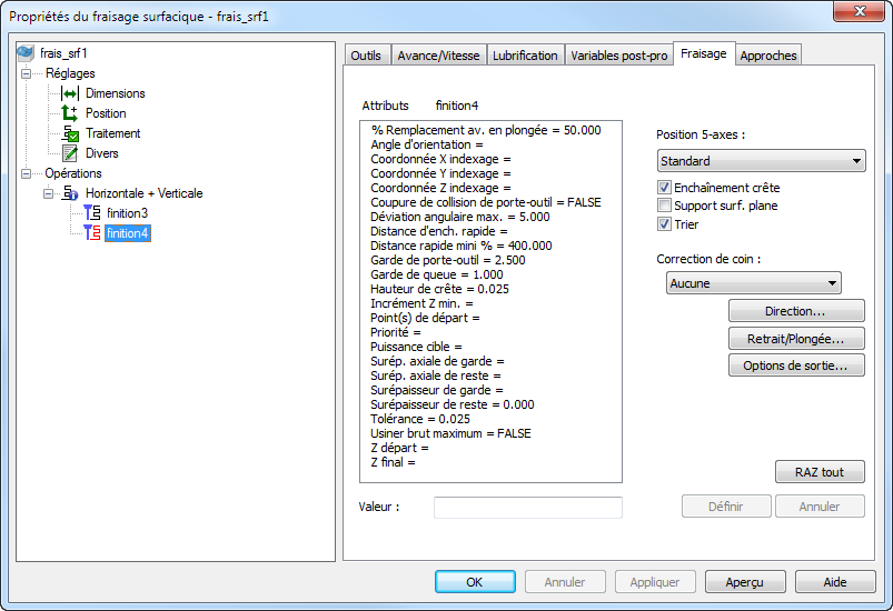 Direction — Cliquez sur ce bouton pour ouvrir la boite de dialogue Direction d'usinage.