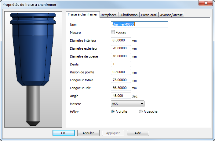 Les fraises à chanfreiner sont utilisées pour les features de chanfrein ou pour chanfreiner les perçages à large diamètre.