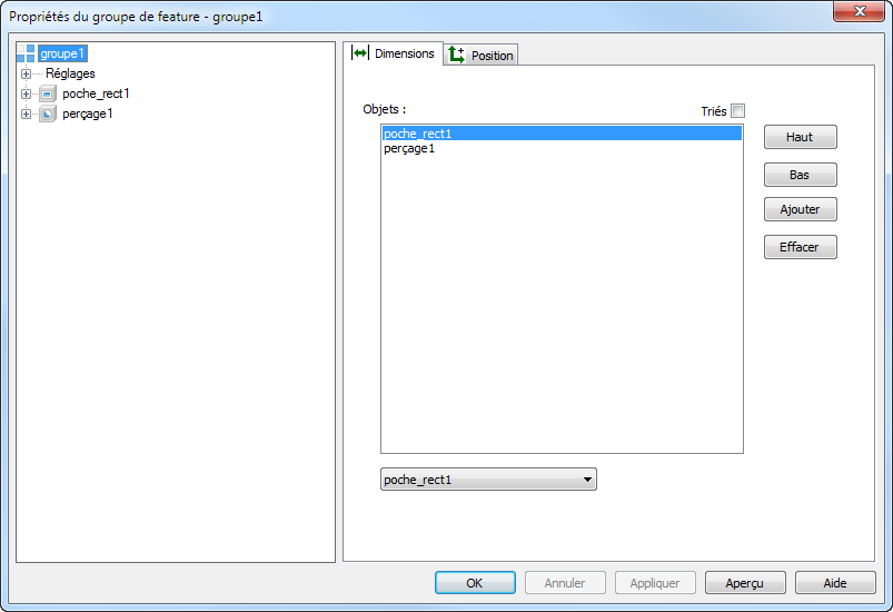 Effacer — Enlève l'objet sélectionné de la liste Objets du groupe.