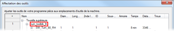 Le bloc d'outil que vous avez sélectionné est affiché dans l'arborescence de l'affectation des outils.