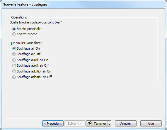 Utilisez la page Nouvelle feature - Stratégies de l'assistant de nouvelle feature pour spécifier la stratégie pour la feature de soufflage.