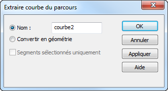 Pour afficher la boite de dialogue Extraire courbe du parcours, cliquez sur Extraire courbe