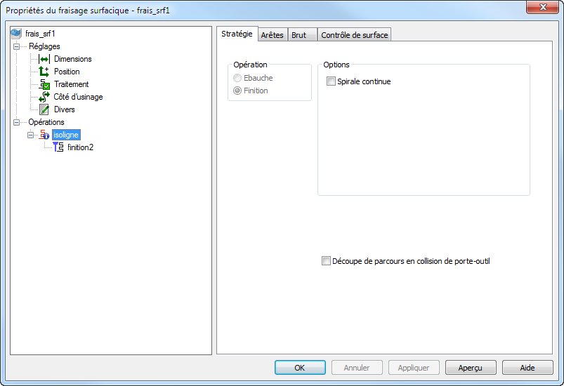 Spirale continue — Activez cette option pour arrêter les remontées d'outil lors de l'usinage.