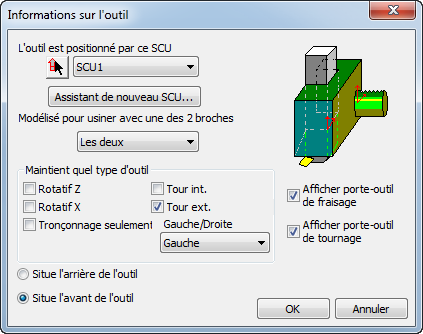 Pour les outils de tour externe, sélectionnez le côté de l'outil.