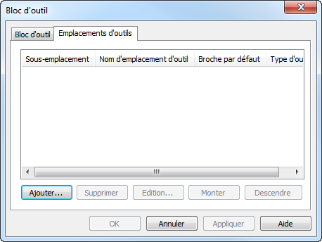 - Pour retirer un emplacement d'outil, sélectionnez-le et cliquez sur Supprimer.