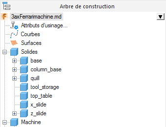 Tout d'abord, ouvrez 3axFerarriMachine Notcomplete.md depuis Examples\Machine Design\Mill\3-Axis.