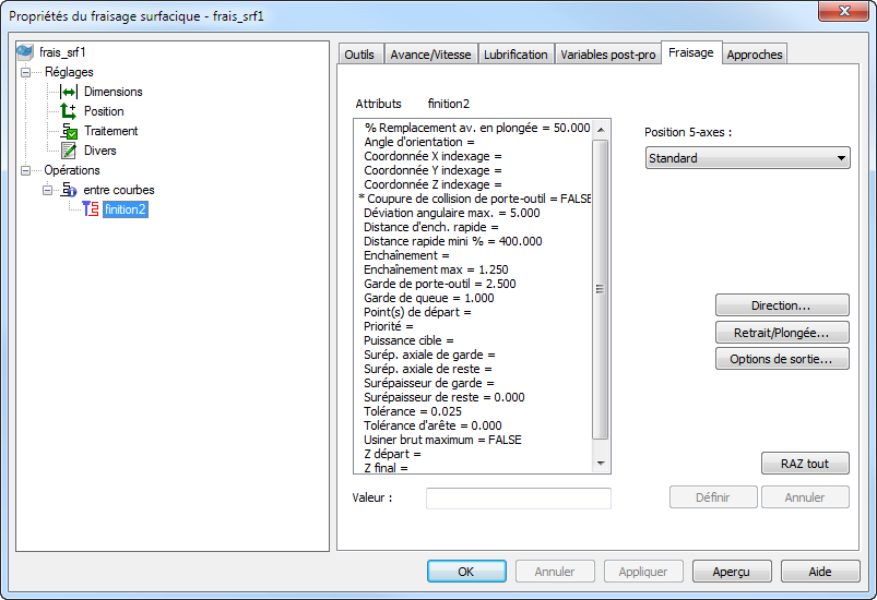 Direction — Cliquez sur ce bouton pour ouvrir la boite de dialogue Direction d'usinage.