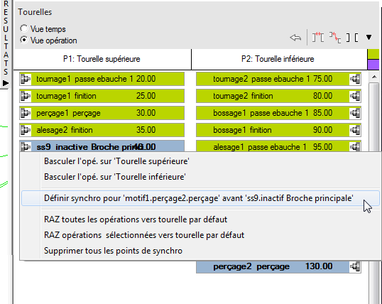 Définir synchro en début opé — Sélectionnez deux opérations et cliquez sur ce bouton pour synchroniser le départ des opérations.