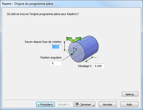 - Si vous voulez translater l'origine des axes, entrez Rayon depuis axe de rotation.