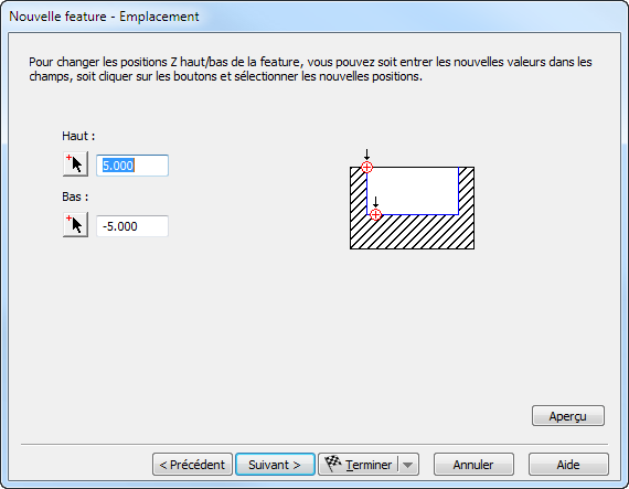 Entrez les hauteurs Z de haut et de bas ou utilisez le bouton Choisir position Z