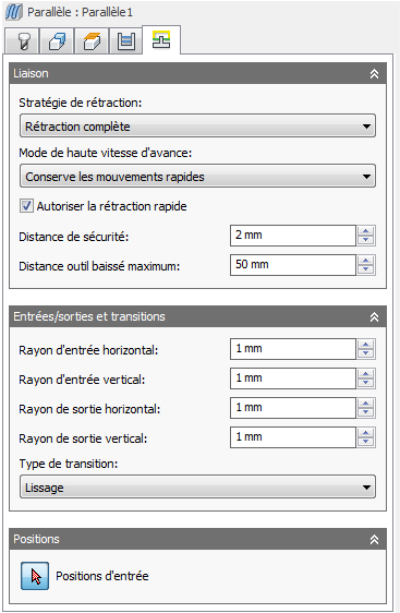 Contient les trajectoires d'outil en fonction d'une plage d'angles spécifiés.