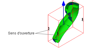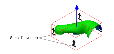 Le sens d'ouverture par défaut du moule est aligné sur l'axe Z positif. Du fait que de nombreux modèles de pièces en plastique sont élaborés de manière aléatoire, le sens de la pièce et celui de l'ouverture du moule sont souvent différents. La fonction Ajuster l'orientation permet d'aligner ces deux directions afin d'assurer leur cohérence.
