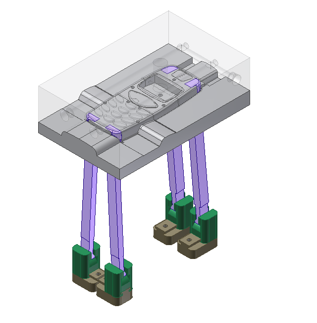 Une cale montante se déplace selon un certain angle pour libérer des détails de moulage internes. La fonction Cale montante place un ensemble de cale montante dans le moule, afin de pouvoir l'ouvrir et le fermer en douceur.