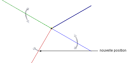 Pour utiliser la commande d'angle, cliquez sur la flèche pointant vers la position angulaire requise. Une fois la position voulue obtenue, sélectionnez un point sur la ligne afin de créer un segment selon cette nouvelle position angulaire.