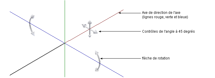 Indique les possibilités de rotation pour le prochain point de routage et permet une rotation libre. L'utilisation simultanée de la commande Accrochage rotatif vous permet de faire pivoter l'axe de direction selon l'orientation d'une géométrie référencée.