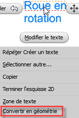 - Cliquez avec le bouton droit de la souris sur le texte d'esquisse et choisissez Convertir en géométrie.