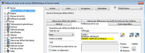 Identifier la référence de feuille associative de la vue de dessin dans les libellés de vue